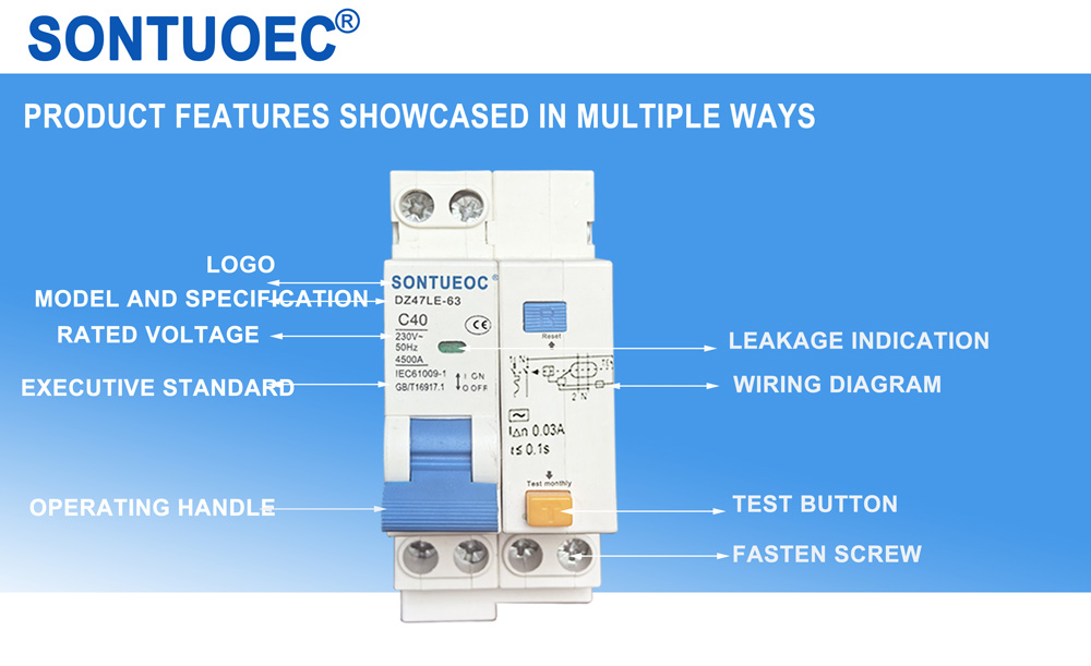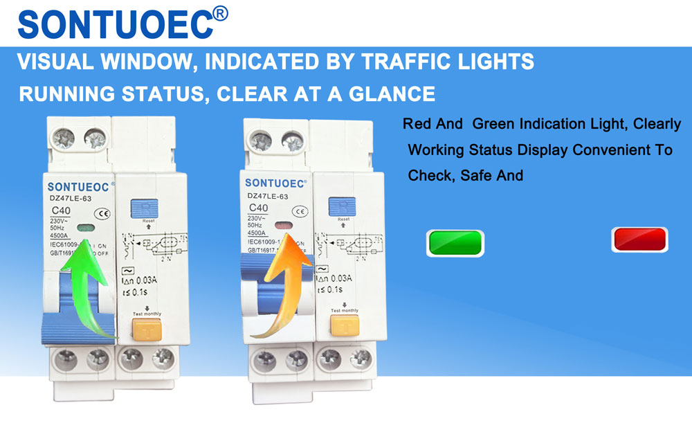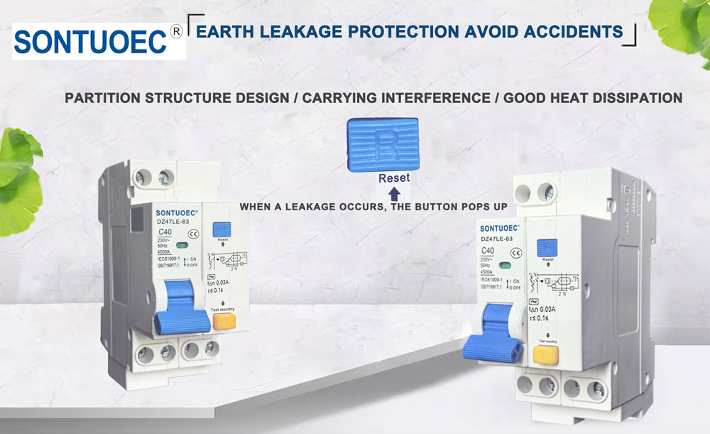 SONTUOEC estas unu el la ĉinaj provizantoj/fabrikistoj specialiĝantaj pri la produktado de diversaj malgrandaj elektraj aparatoj.DZ47LE aplikebla al linio de AC 50/60Hz taksa tensio 230V por ununpolusa du dratoj, 2 polus aŭ 3 polus aŭ 4 polus aŭ 3 rewi. 4 poluso kaj taksa kurento ĝis 63A. Ĝi povas protekti la linion kaj motoron de troŝarĝo kaj kurta cirkvito Ĝi povas esti ankaŭ esti uzita por malofta linia konverto kaj malofta motoro komenco. Ĝi konformas kun la normoj de IEC61009.1.