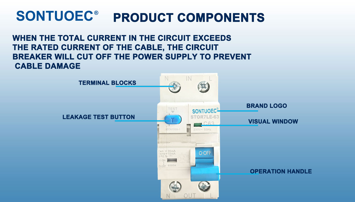 SONTUOEC estas unu el la ĉinaj provizantoj/fabrikistoj specialigitaj pri produktado de diversaj malgrandaj elektraj aparatoj. STRO7LE-63 RCBO estas uzata en la unufaza loĝeja cirkvito de AC 50/60Hz, taksita tensio 240V kaj ĝia memprotekta ĝis maksimuma kurta cirkvito kurento 40A. Ĝi povas protekti civilan elektronikan cirkviton kontraŭ troŝarĝo kaj kurta cirkvito. Ĉi tiu produkto havas avantaĝojn de malgranda volumo, alta rompkapablo, kaj viva drato estas fortranĉita samtempe, ankaŭ protektante homon de elektra ŝoko kiam la viva drato konektita kontraŭe. Kaj ĝi konformas al la normo de IEC 61009-1.