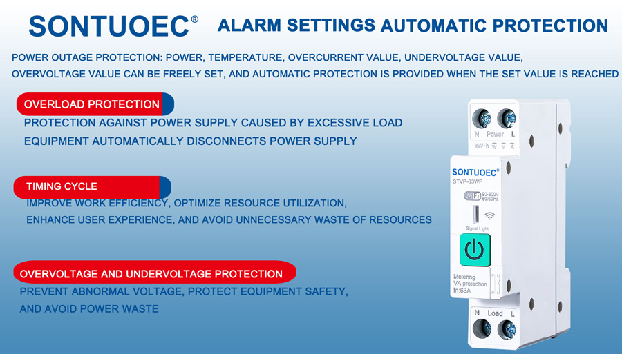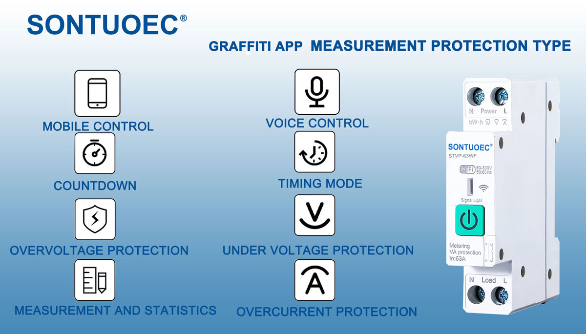 Sontuoec estas unu el la ĉinaj provizantoj/fabrikantoj specialiĝantaj pri WiFi-inteligenta alt-potenca ŝaltilo 220V poŝtelefono fora sendrata kontrolo-tensia protektilo, provizante inteligentajn solvojn por cirkvitkontrolo. Liaj funkciaj ecoj inkluzivas inteligentan teleregilon, sekurecan protekton kaj precizan mezuradon taŭgan por inteligentaj hejmaj sistemoj, uzantoj povas remotamente regi hejmajn aparatojn per movebla app por atingi personajn scenajn agordojn kaj ŝparadon de energio; Ĝi ankaŭ estas vaste uzata en komercaj, oficejaj kaj aliaj lokoj, faciligante centralizitan kaj inteligentan elektran monitoradon kaj kontrolon, plibonigante administran efikecon kaj kontentigante la diversajn bezonojn de moderna inteligenta vivo kaj laboro.